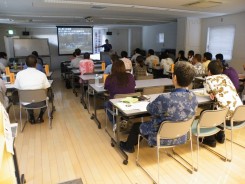 桑原さんからは、日頃の地域福祉活動を災害時に活かす視点や講師自身が災害現場で経験した被災地の状況や社協の活動の様子が伝えられました。