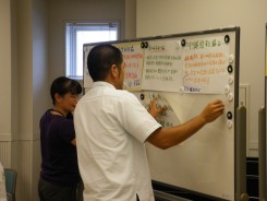 お昼休憩をはさんだ後は、災害対応策として、今後どのように取組んでいくのか、そしてその手順等を各市町村社協で具体的に考えてみました。